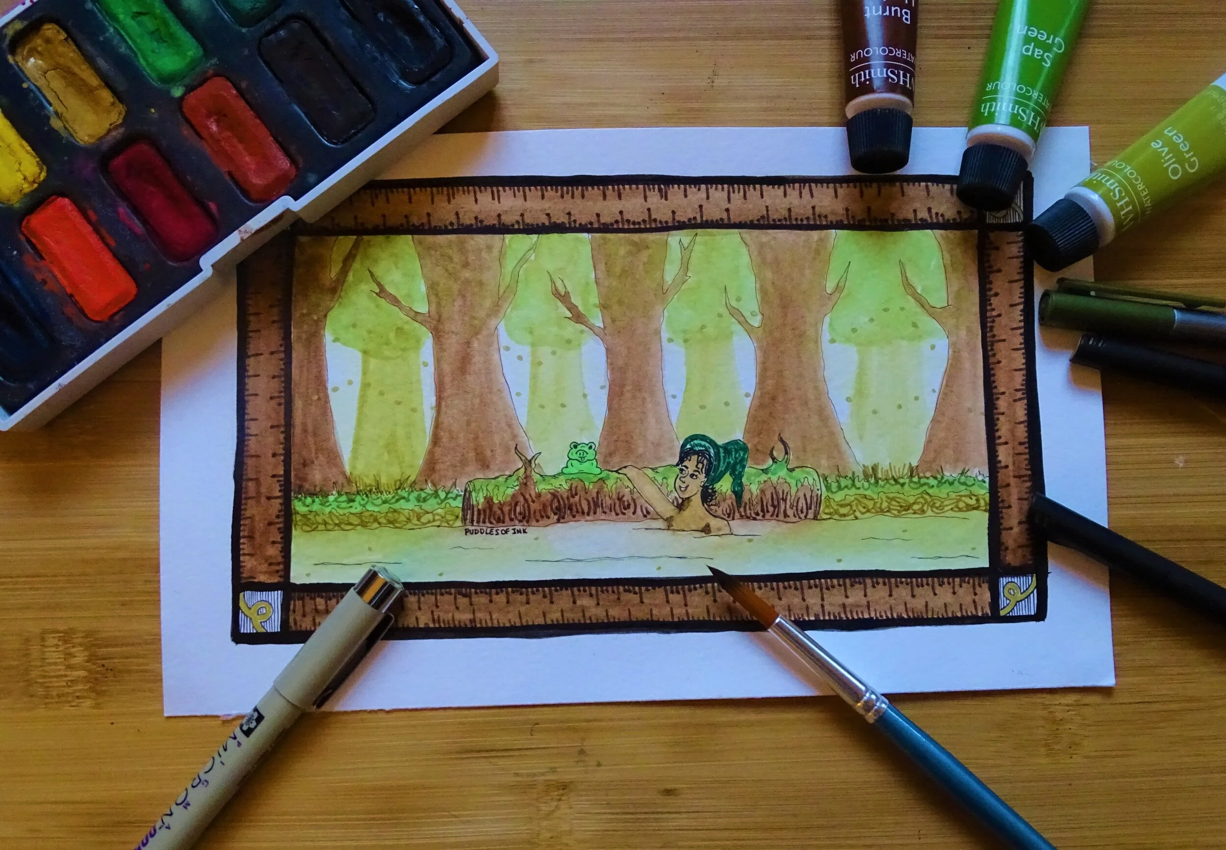 I bought a set of around 12 Winsor and Newton Inks a few years ago at a WHSmith’s outlet, and these are the three remaining survivors! I couldn’t find the exact set I had, but the closest to it is their Henry Collection, which has 8 colours. This is a great way to try them out, and I’m so impressed that these have lasted as long as they have. I’ve used them in multiple illustrations so far this month, usually by diluting them down a little, or just applying them with a brush, and they’ve been a really fun asset. I also use them a lot in my sketchbook with my dip pen, and once this month is over I’m going to try to do more pieces like that because I find the process so relaxing.